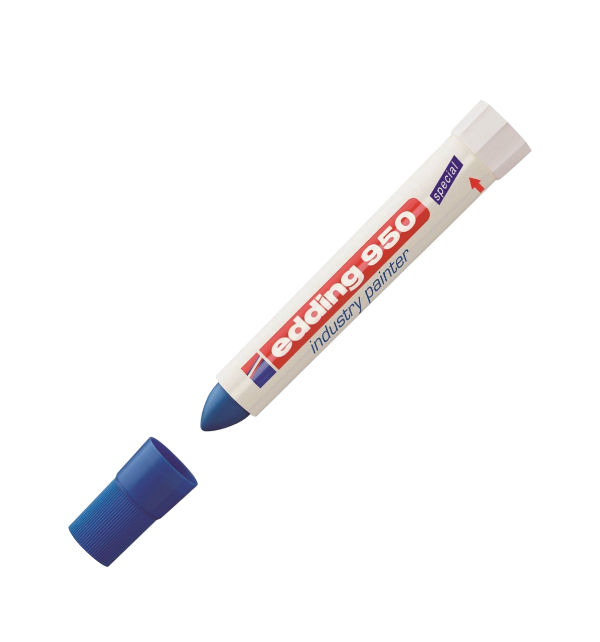 В маркере Edding E 950 в качестве маркирующего вещества используется высокостойкая пигментная, плотно ложащаяся мастика. Мастика застывает через несколько секунд после ее нанесения на маркируемую поверхность. У фирмы Edding есть положительный опыт использования индустриального маркера Edding E 950 при проведении подводных работ. Благодаря водостойким свойствам мастики, данным маркером можно делать широкие, хорошо заметные надписи под водой и на предметах, длительное время находящихся в воде. Температурный режим нанесенной и высохшей краски маркера — до 300 °C. Температура поверхности при нанесении — не более 100 °C.