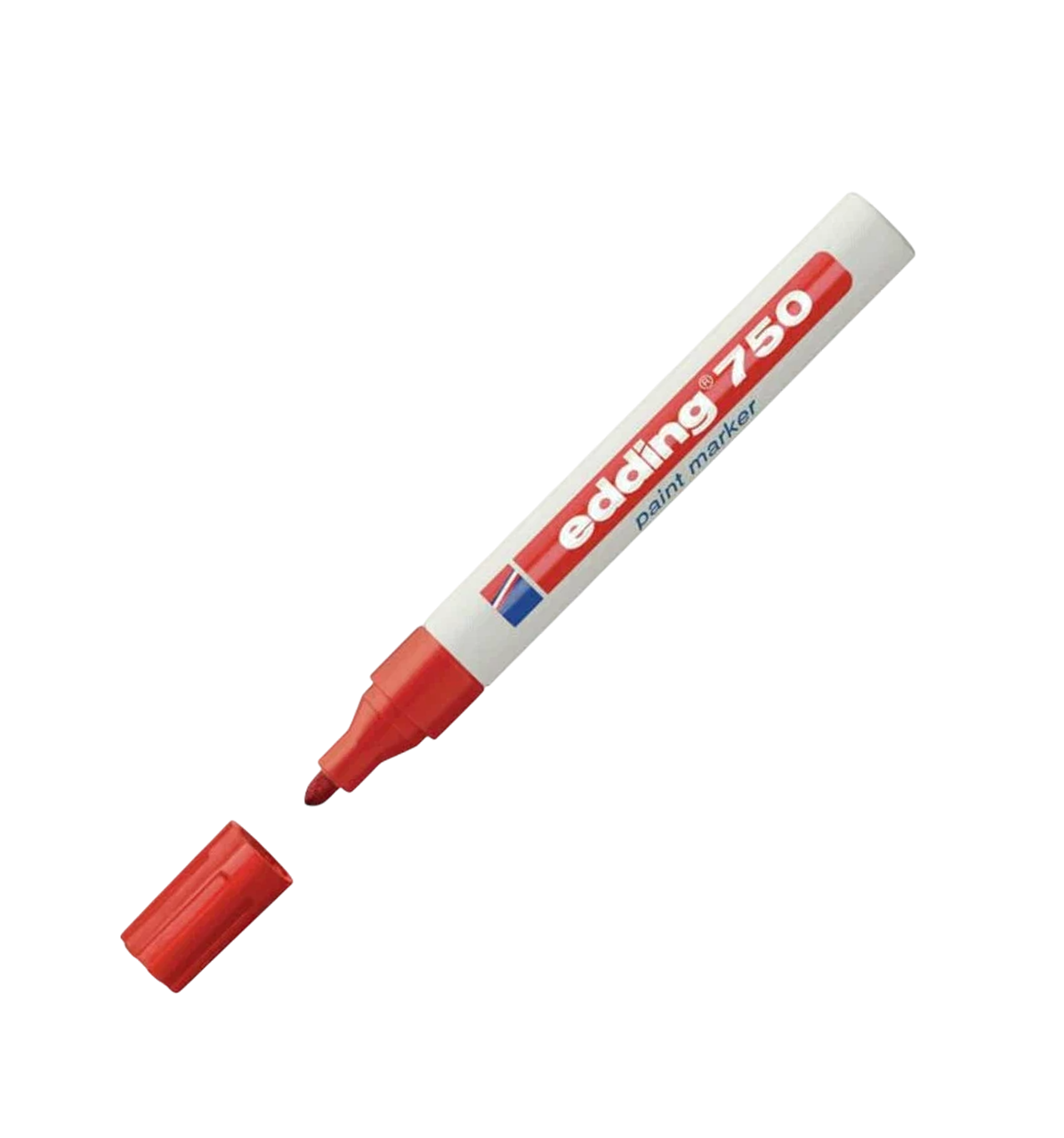 Универсальный маркер Edding 750, используется для промышленной непрозрачной маркировки практически всех материалов, например, стекла, пластика, дерева или металла. Может применяется для письма на жирных, пыльных, грязных поверхностях. Лаковый маркер устойчив к кислотам, растворителям, механическому истиранию, свету. Высококонцентрированный пигмент хорошо ложится на гладкие и шероховатые поверхности. Специальные добавки, введенные в состав маркера Edding E 750 растворяют, масляную пленку на поверхности письма. Непрозрачные лаковые чернила позволяют делать хорошо заметные надписи густым плотным слоем даже на темных поверхностях. Корпус промышленного маркера изготовлен из алюминия. Маркер Edding E 750 имеет упроченный круглый (пулевидный) наконечник. Наконечник маркера может быть заменен по мере истирания. Благодаря тонкому наконечнику, маркером может наноситься маркировка на небольшие элементы и поверхности. Толщина линии — 2-4 мм. Поток чернил регулируется клапаном. Чернила маркера с лакирующим эффектом на основе нитрокраски. Водостойкий, быстро сохнет. Термостойкость надписи до 1000 градусов по Цельсию. Надписи цветами 06-010, 049, 054 также видимы до 1000 С. Термостойкость остальных цветов — до 400 градусов по Цельсию. Маркер Edding E 750 хорошо зарекомендовал себя в работе при перепадах температур от −15 до 30. Промышленный лаковый маркер Edding Е-750 универсален. Используется, например, при нанесении меток на разнородные материалы. При маркировке изделий из резины, пластика, стекла, металла, кабеля, проводов, при нанесении маркировки на товары достаточно одного маркера — Edding E 750. Идеально подходит для маркировки грузов, приборостроения, технологической маркировки. Кроме того, маркер Edding E 750, благодаря разнообразной палитре цветов и свойствам красящего вещества, широко используется для декоративных и оформительских работ дизайнерами. используется в витражных работах, росписи по дереву и керамике, для других интерьерных работ. Инструкция по применению маркера: 1. Перед использованием хорошенько встряхнуть с закрытым колпачком. 2. Снимите колпачок, прижмите наконечник к поверхности, надавите и удерживайте пока не проступит краска. 3. Применять после того как убедитесь, что вытекает исходный цвет. Предостережение: плотно закрывайте колпачок после применения, держать маркер вдали от огня и прямых солнечных лучей.